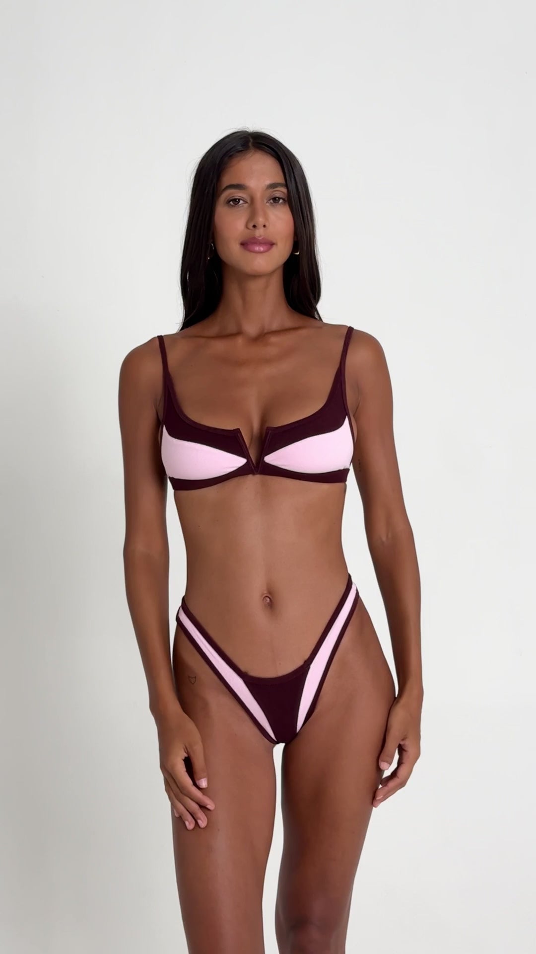 Luxe and bold, our signature Goi bottoms are a high-cut thong designed to lift and sculpt. Featuring dynamic contrast paneling in a striking colour combination cut to perfection. Crafted in the finest quality sustainable Nylon.