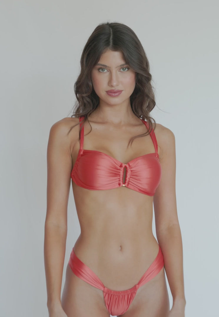 Catch some rays in this ultra supportive halter bikini top cut in shimmering fabric. The Stevie top features glamorous 24k gold dipped hardware and keeps you comfortable; it’s a much needed update to your summer bikini lineup.